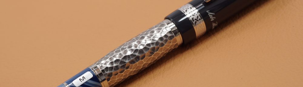 ブラックキャップ、シルバーボディ、そして、淡いブルーマーブルの尻軸